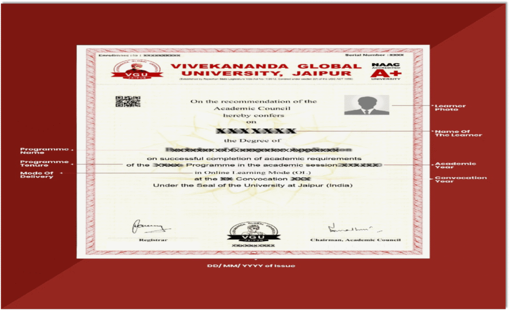 Vivekananda Global University , Jaipur online programs are delivered in a 100% online mode so that students can attend live classes on weekends and complete the program remotely, while also pursuing their professional and personal commitments in parallel.